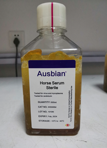 Ausbian®馬血清為細(xì)胞培養(yǎng)級(jí)。它來自健康馬血液,為封閉系統(tǒng)內(nèi)無菌采血過濾而成,為淡黃色澄清液體,超低內(nèi)毒素,無溶血,無異物,無細(xì)菌、真菌、支原體、噬菌體等。